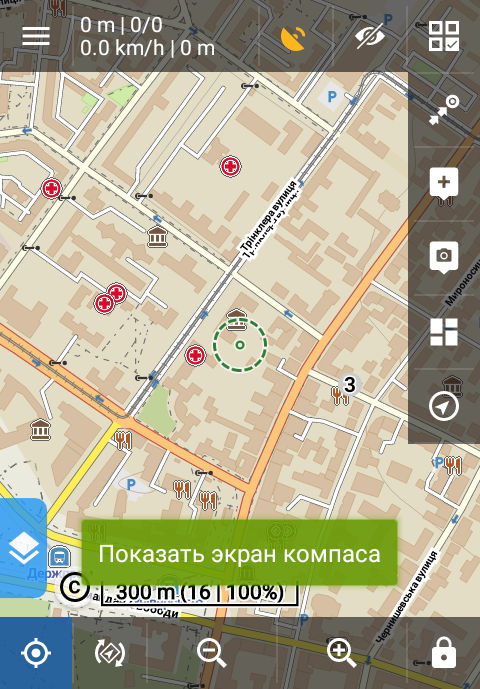 - Поворот карты по компасу или по направлению движения