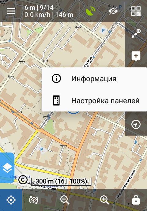 - Кнопки изменения масштаба карты