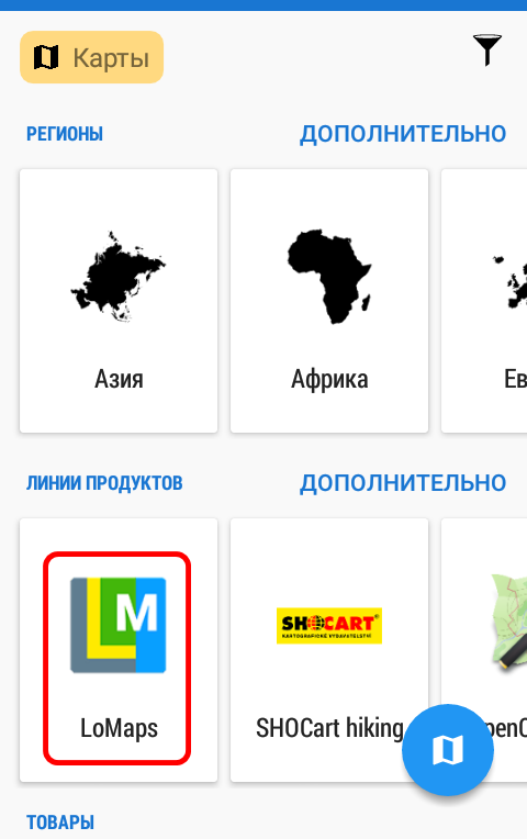 | Открываем «LoMaps» или нужный регион |