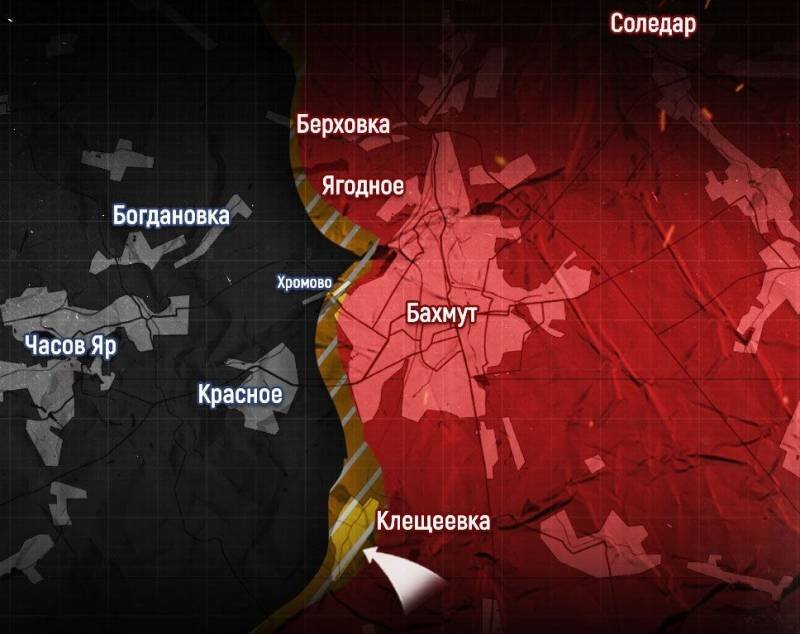 К югу от Артемовска противник оставил попытки контратаковать, чем не преминули воспользоваться российские бойцы, сумев отбросить ВСУ от железнодорожной линии в направлении западных окраин Клещеевки.