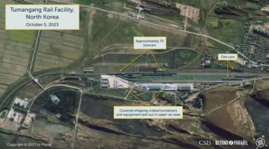 Впервые западные разведки обнаружили необычное оживление на Хасанской ветке ещё 5 октября. С тех пор интенсивность движения на участке возросла в разы. Спутниковый снимок CSIS.