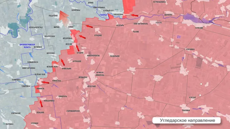 На Угледарском участке ожесточённые бои идут западнее Вольного Поля, Зелёного Поля и Новополя.