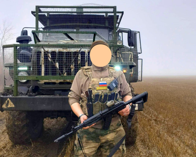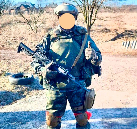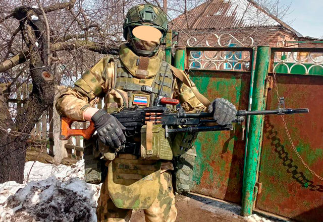 Боец в бронежилете с полным набором дополнительных модулей, и в наколенниках (фото из открытых источников).