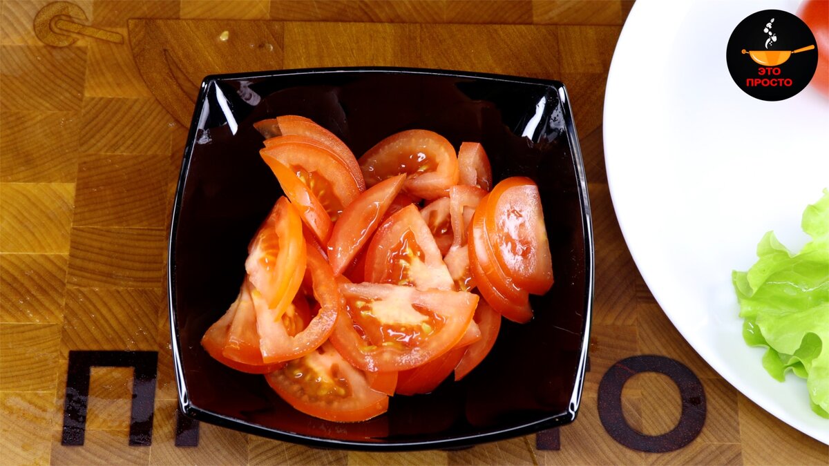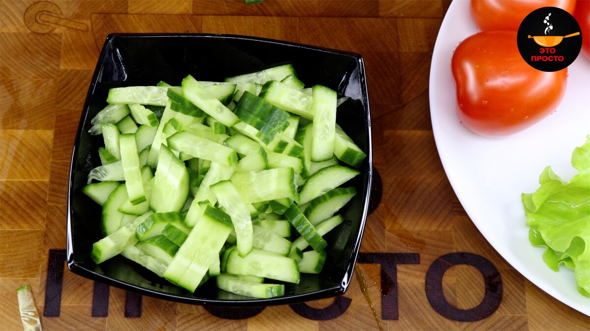 Из овощей в начинку нам понадобится ещё свежий огурец и свежий помидор, а также листья салата.