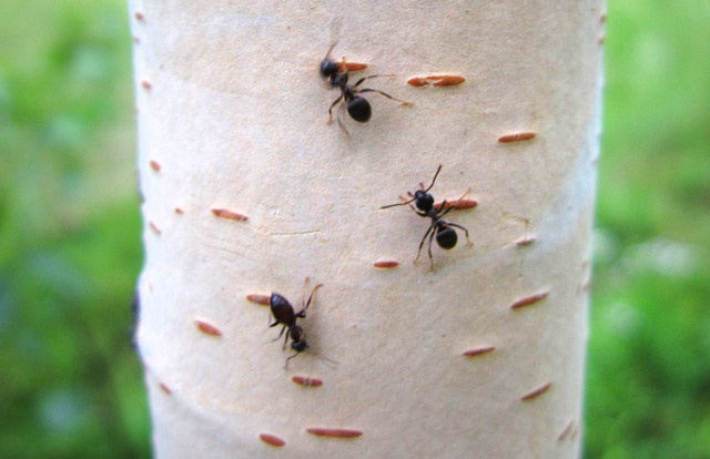 Муравьи бегут по стволу молодой берёзки. Рядом вьются комары. Не знают, что муравьи несут в себе средство от них... (почти попытка в хокку ).
