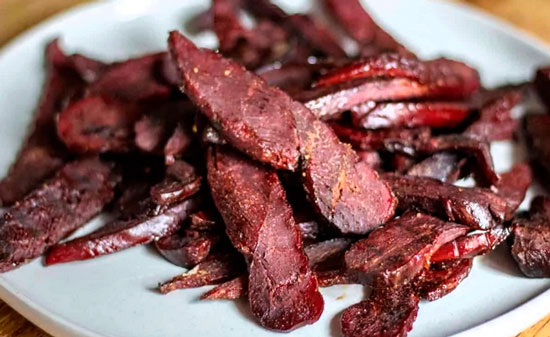 Мясо нарезают тонкими полосками, слайсами. Раскладывают на муравейнике, периодически переворачивают. Держат пару часов. Обработанное таким образом мясо заворачивают в тряпку, также пропитанную муравьиной кислотой, затем в пакет, и убирают в максимально прохладное место, ну или в рюкзак, если в пути.