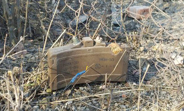 Мина направленного действия МОН-50. Вероятно элемент управляемых минных полей ВСУ. Найдена после освобождения части Марьинки. Донбасс 2022 (фото из открытых источников).