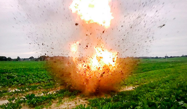 Управляемый подрыв мины в поле (фото из открытых источников).
