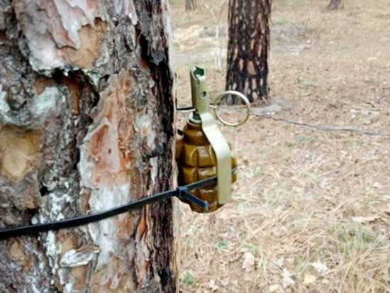 Граната Ф-1 на дереве, растяжка (фото из открытых источников).