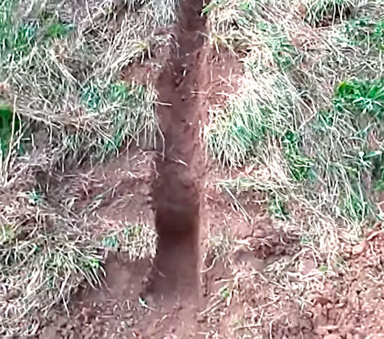 Вниз по склону выкапывают траншею. Соединяют её с камерой коптильни.
