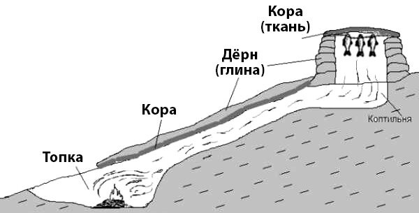 Схема коптильни на склоне (изображение из открытых источников).