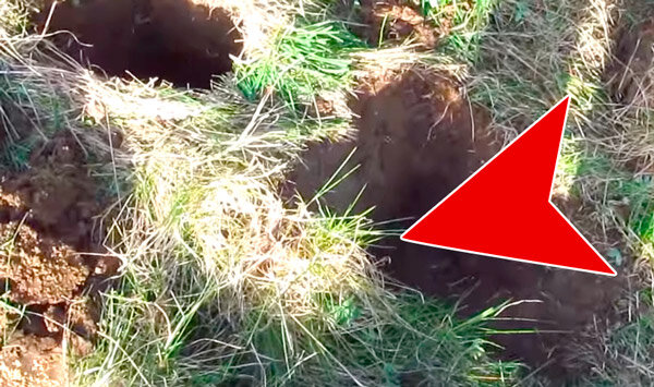 Полностью заложенная дёрном траншея-дымоход