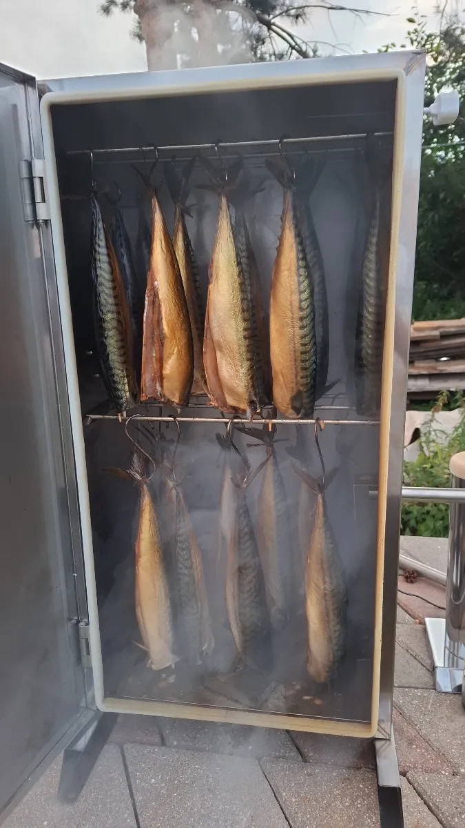 Рыба, щук установлена в камере коптильни, спинкой к выходу дыма из дымохода.