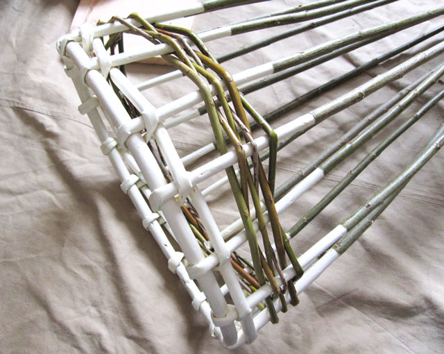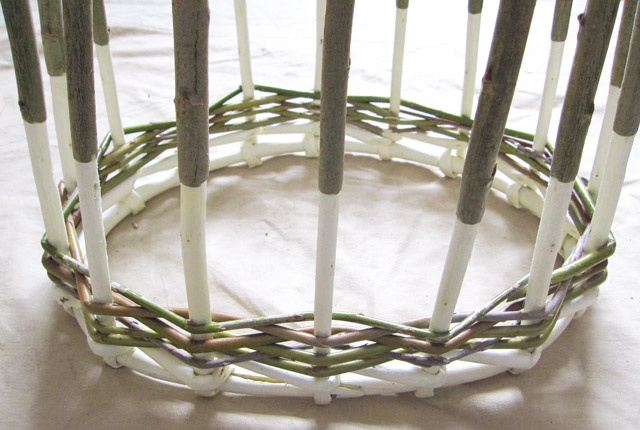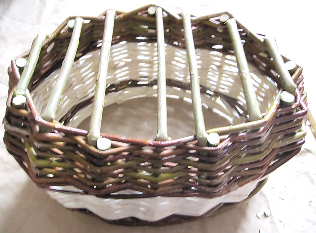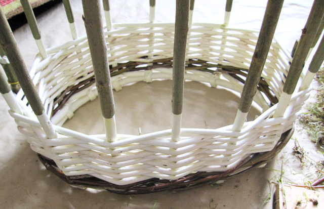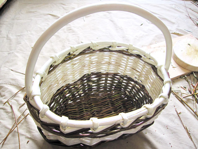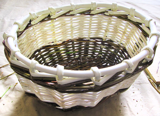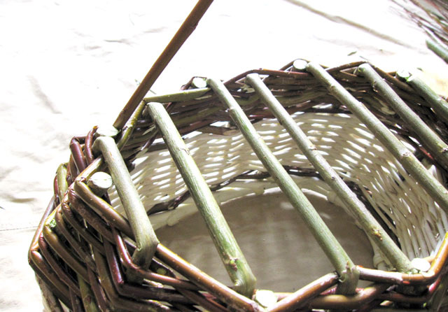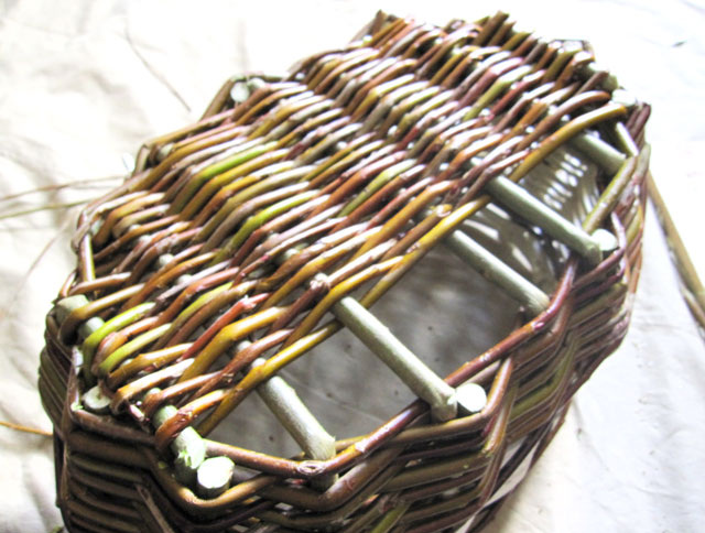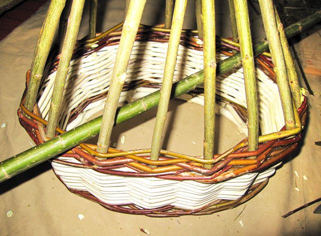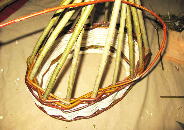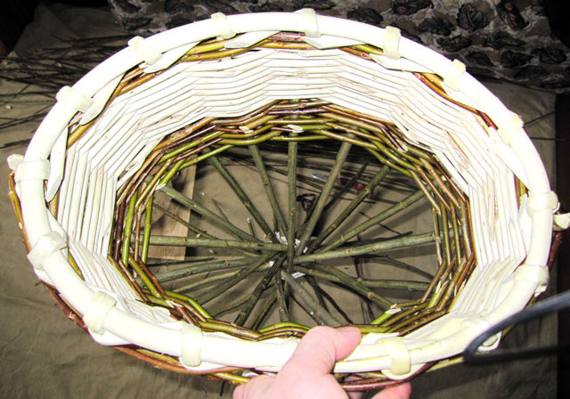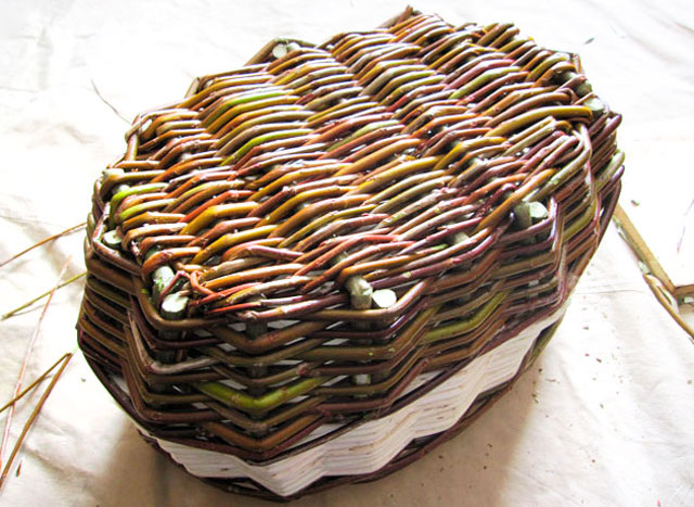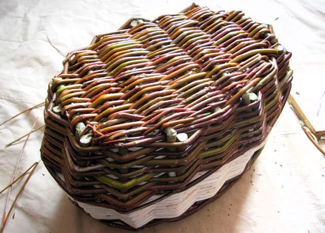 Процесс плетения корзинки из ивовой лозы, примерно половина процесса.