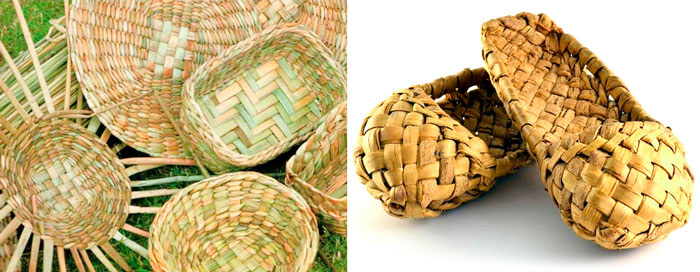 Изделия, плетёные из рогоза: посуда, лапти (фото из открытых источников).