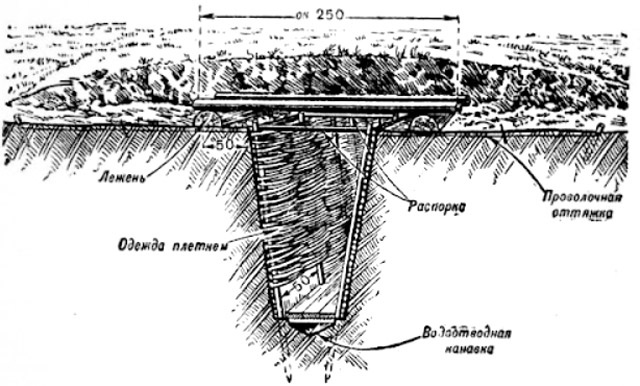 Отделка окопов плетеными из лозы щитами. Наставление по фортификациям РККА 1939 года (изображение из открытых источников).