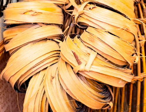 Липовое лыко, заготовленное. Если не плести прям на месте быстро, то такие рулоны потому нужно вымачивать в воде, чтобы вернуть гибкость (фото из открытых источников).