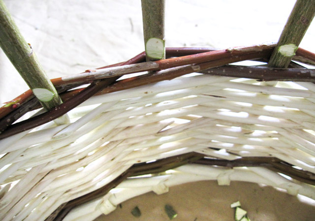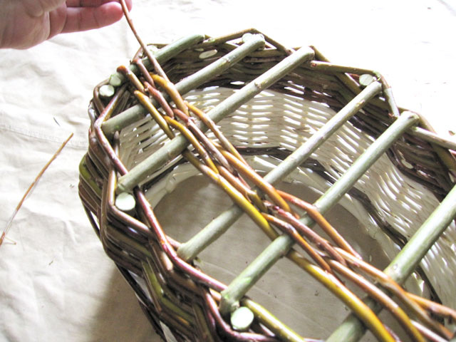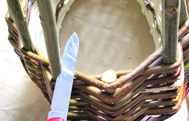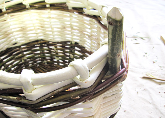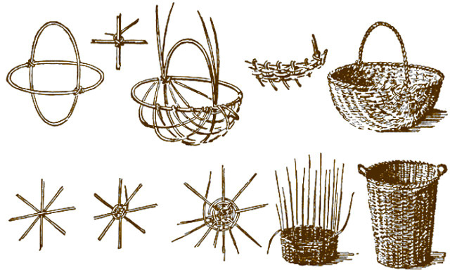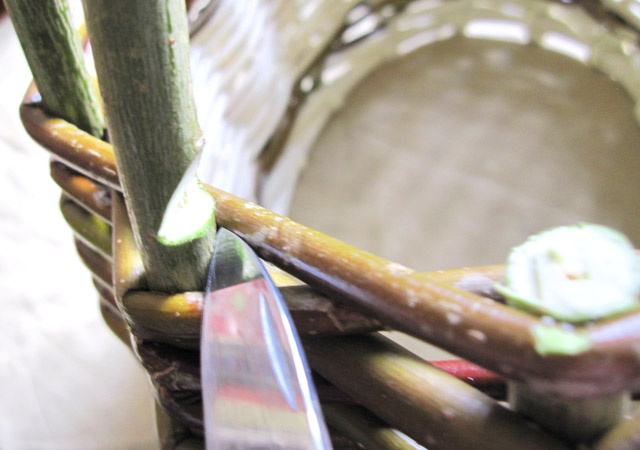 Плетение корзины из ивовой лозы.