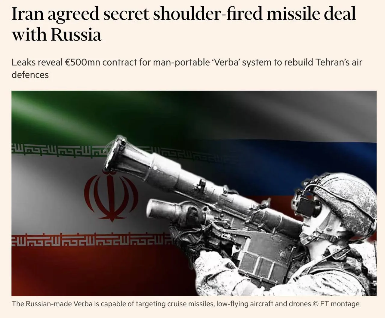 о покупке 500 переносных зенитно-ракетных комплексов «Верба» и 2500 ракет к ним — Financial Times со ссылкой на источники и текст соглашения.